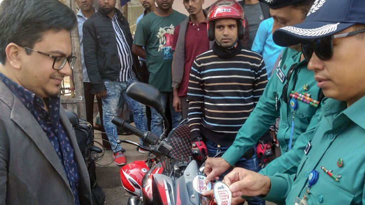 চট্টগ্রাম মেট্রোপলিটন পুলিশের সহায়তায় চট্টগ্রামের আগ্রাবাদ বাদামতলী মোড়ে রাইডারদের মাঝে এ স্টিকার বিতরণ করা হয়।