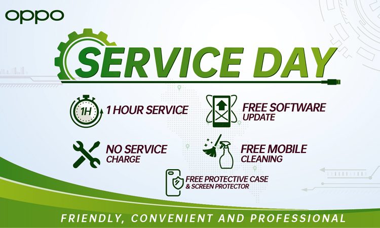স্মার্টফোন ব্যবহারকারীদের বিশ্বমানের সার্ভিসিং প্রদানে পেশাদার সার্ভিস, ঝামেলাবিহীন এবং আন্তরিক সেবা প্রদানের প্রয়াসে অপো নিয়ে এলো ‘সার্ভিস ডে’ সেবা। প্রতি মাসের তৃতীয় শনিবারে আয়োজন করা হবে এই ‘সার্ভিস ডে’। আর এ দিন স্মার্টফোন ব্যবহারকারীদের বিনামূল্যে মোবাইল ক্লিনিং, সফটওয়্যার আপডেট, সেফটি কেস এবং স্ক্রিন প্রোটেক্টর উপহার দেবে অপো।